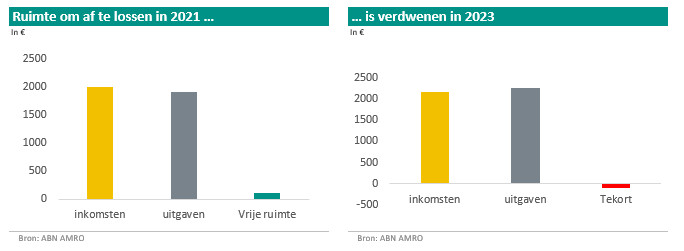 Ten tweede verdwijnt door inflatie de aflosruimte, of wordt kleiner. In 2021 kon een huishouden met 2000 euro netto maandinkomen en 1900 euro aan uitgaven 100 euro per maand aflossen in een betalingsregeling. Een energie-jaarafrekening van 2000 euro is zo binnen twee jaar, inclusief rente en incassokosten, bij het incassobureau afgelost. Op basis van onze inkomens- en inflatieverwachting ontvangt ditzelfde huishouden in 2023 echter 2153 euro netto per maand en zijn de uitgaven, tenzij er bezuinigingsmogelijkheden zijn, 2157 euro netto per maand. Dit huishouden heeft geen ruimte om af te lossen in een betalingsregeling.